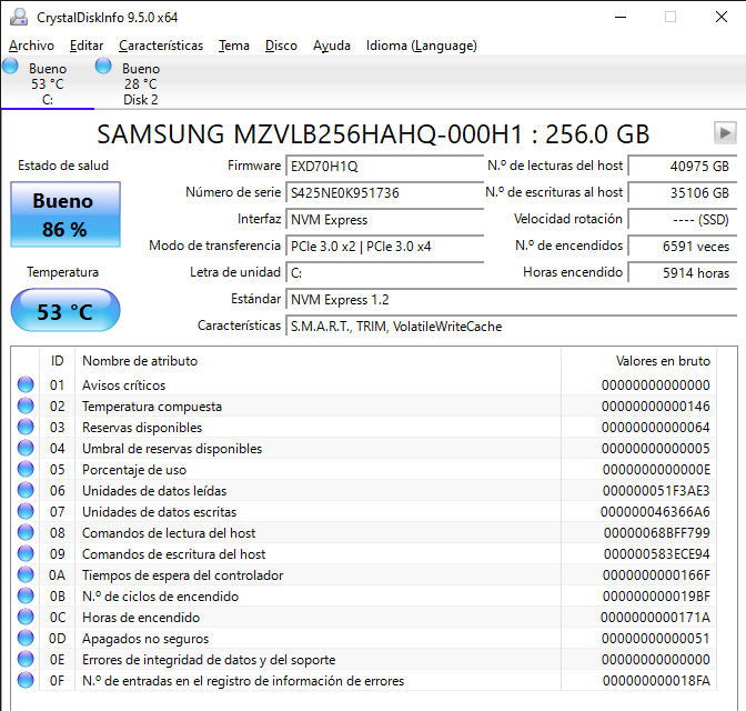 Disco duro: 256GB SSD m.2 y 1TB HDD