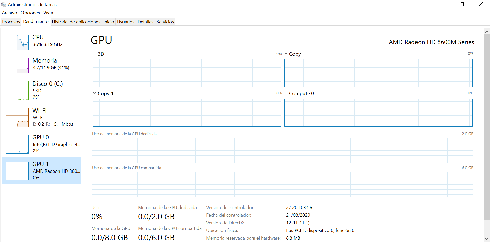 - Tarjeta Grafica: AMD Radeon HD 8600M Series ( 2GB )